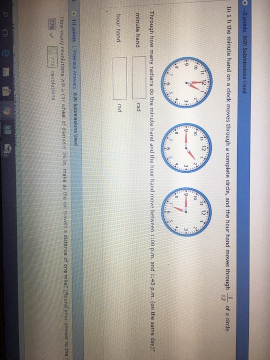 Solved s Used In 1 h the minute hand on a clock moves
